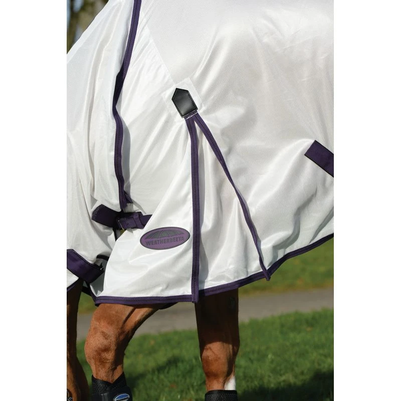 The WeatherBeeta ComFiTec Essential Mesh II Standard Neck offers softmesh fly protection, that’s breathable and cool with 65% UV block. Featuring 210T nylon lining at the shoulders, mane and tail, traditional side gusset for natural movement, twin adjustable buckle front closure with touch tape and low cross surcingles, plus a large tail flap and adjustable, removable web leg straps.